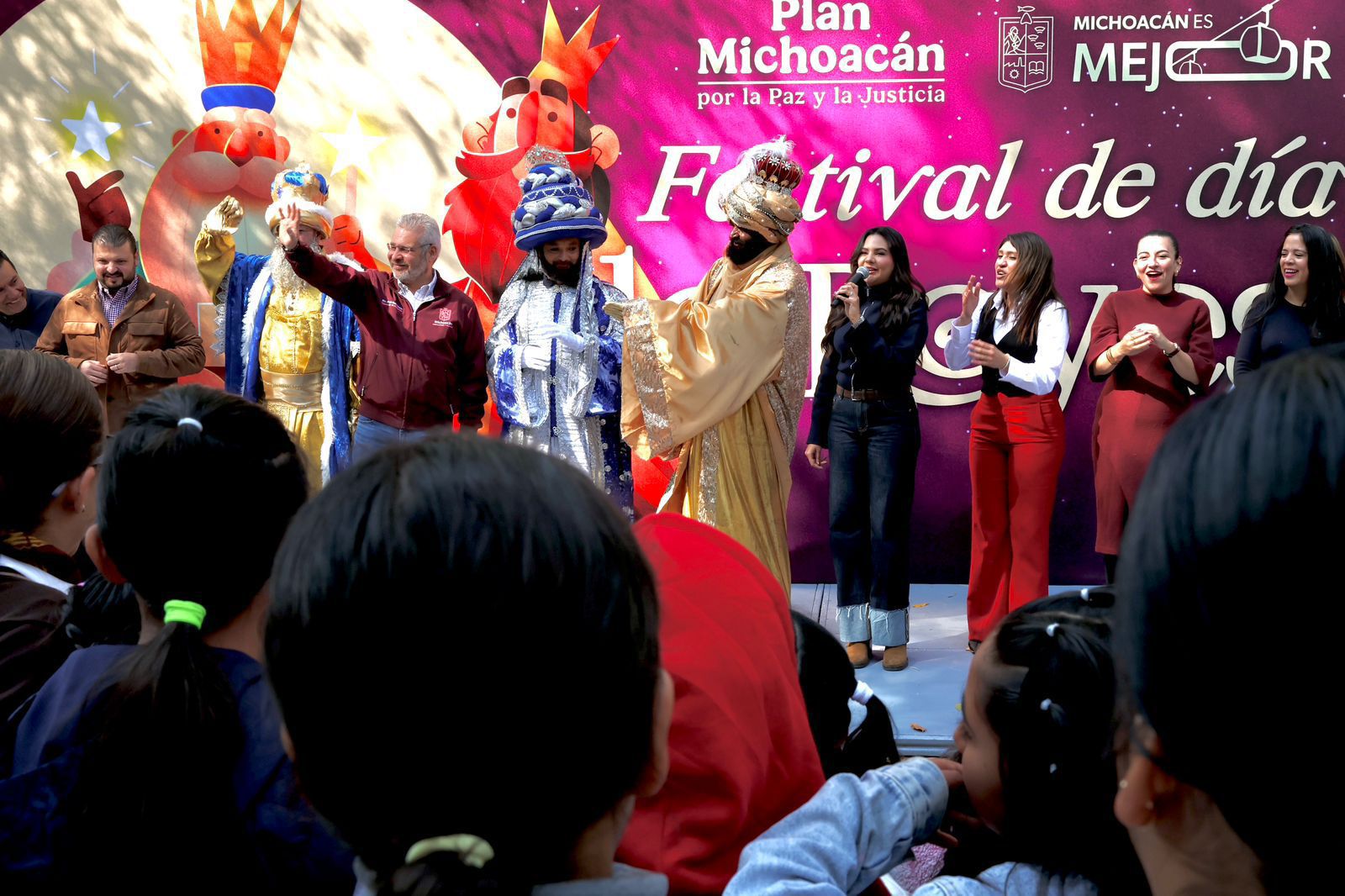 • Niñas y niños vivieron la magia y tradición con Melchor, Gaspar y Baltasar Morelia, Michoacán, 6 de enero de 2026.- En un ambiente de alegría y tradición, el mandatario Alfredo Ramírez Bedolla y los tres Reyes Magos, Melchor, Gaspar y Baltasar, entregaron juguetes a niñas y niños michoacanos, con quienes compartió la Rosca de Reyes, en la Villa Navideña del Gobierno estatal. El mandata...