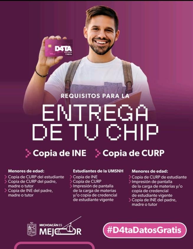 • A cerca de 500 jóvenes del Cecytem; continuarán su educación sin interrupciones Uruapan, Michoacán, 24 de marzo de 2026.- El gobernador Alfredo Ramírez Bedolla entregó chips de internet y tarjetas SIM del Programa D4TA, Datos Gratis, a cerca de 500 jóvenes del Colegio de Estudios Científicos y Tecnológicos de Michoacán (Cecytem), plantel Uruapan, para que puedan continuar su educación s...