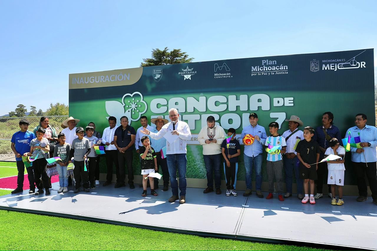 • Recuperación de espacios públicos beneficia a más de 13 mil 500 habitantes de la comunidad Charapan, Michoacán, 8 de marzo de 2026.- El gobernador Alfredo Ramírez Bedolla inauguró en la comunidad indígena con autogobierno de San Felipe de los Herreros, una cancha de futbol 7, para beneficio de más de 13 mil 500 habitantes, como parte de la estrategia estatal de recuperación de espacios ...