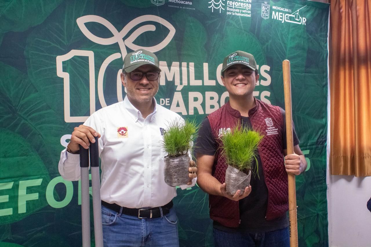 • En el ejido de El Potrero, afectado por incendios forestales Hidalgo, Michoacán 27 de julio de 2025.- Los jóvenes de Michoacán se suman a la campaña de reforestación 2025 “Sembremos el futuro”, que este sábado llegó al municipio de Hidalgo para sembrar más de 8 mil árboles. Organizada por el Instituto de la Juventud Michoacana (Ijumich), acudieron al llamado para recuperar los bosque...