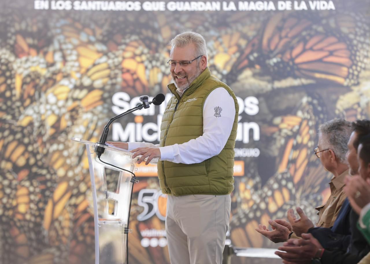 • Para temporada 2025-2026 se esperan 800 mil turistas y una derrama de mil mdp Angangueo, Michoacán, 22 de noviembre de 2025.- Desde el Santuario de Sierra Chincua en el municipio de Angangueo, el gobernador de Michoacán, Alfredo Ramírez Bedolla y las secretarias federales de Medio Ambiente y de Turismo, Alicia Isabel Adriana Bárcena Ibarra y Josefina Rodríguez Zamora, respectivamente, i...