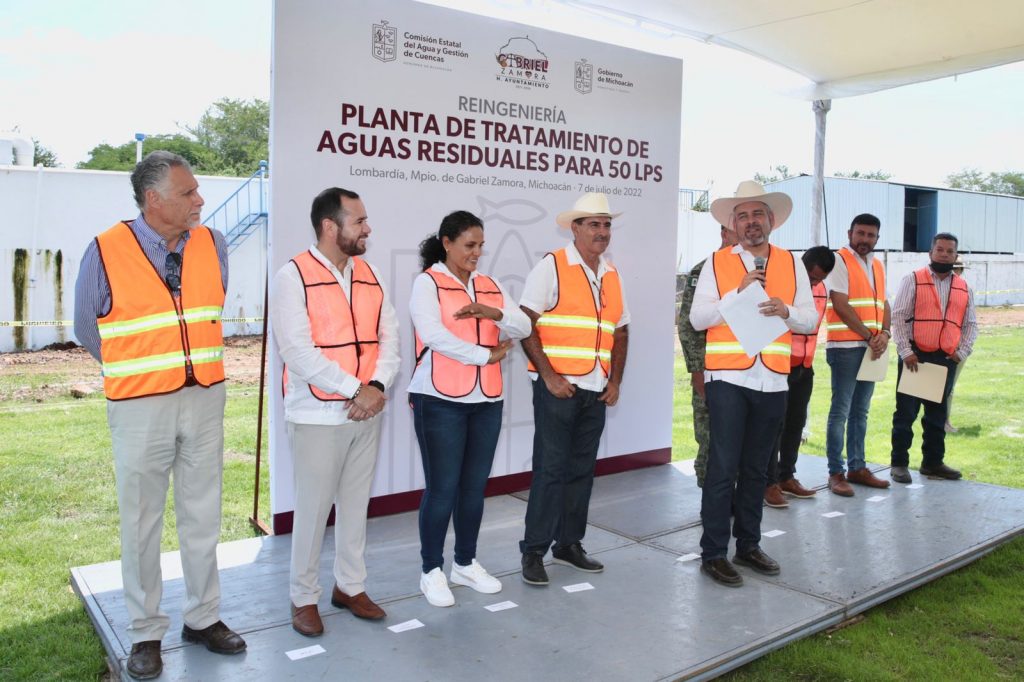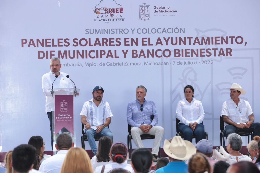 Gabriel Zamora, Michoacán, 8 de julio de 2022.- El gobernador Alfredo Ramírez Bedolla, puso en marcha trabajos de reingeniería de la planta tratadora de aguas residuales y, de suministro y colocación de paneles solares en el ayuntamiento, edificio del DIF municipal y el Banco Bienestar de Lombardía, municipio de Gabriel Zamora.