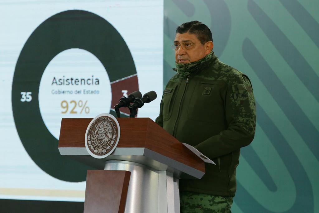 Luis Cresencio Sandoval Gonzáles, secretario de la Defensa Nacional, quien también acompañó al Presidente y al Gobernador, compartió que, desde la llegada de la presente administración hay seis delitos con tendencia a la baja: secuestro, robo de vehículos, casa- habitación y transporte; además de la trata de personas y delitos de impacto.