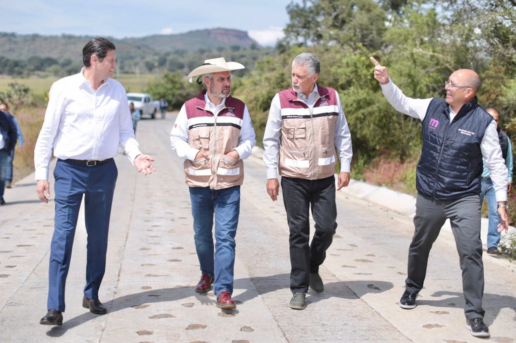 Lagunillas, Michoacán, 20 de octubre del 2022.- El gobernador Alfredo Ramírez Bedolla, acompañado del secretario de Obras Públicas (SCOP), José Zavala Nolasco, y del presidente municipal de Morelia, Alfonso Martínez Alcázar, supervisó los trabajos de reconstrucción de los tramos carreteros Lagunillas-El Correo y Cuto de la Esperanza-Teremendo, financiados a través del programa “Va de Vuelta”.