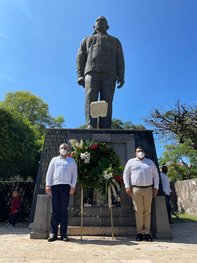 En vísperas del aniversario luctuoso del general Lázaro Cárdenas del Río y acompañado por el alcalde Elías Barajas Bautista, el mandatario realizó guardia de honor al pie del monumento dedicado al expresidente de México en su cuidad natal.