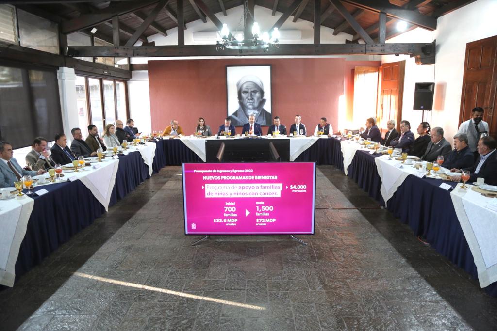 Morelia, Michoacán, 02 de diciembre del 2021.- El gobernador Alfredo Ramírez Bedolla presentó el proyecto de presupuesto 2022 a integrantes de diversas cámaras y organismos empresariales, quienes manifestaron su confianza en que el paquete económico propuesto por el Ejecutivo tiene los componentes necesarios para impulsar la reactivación económica en Michoacán.