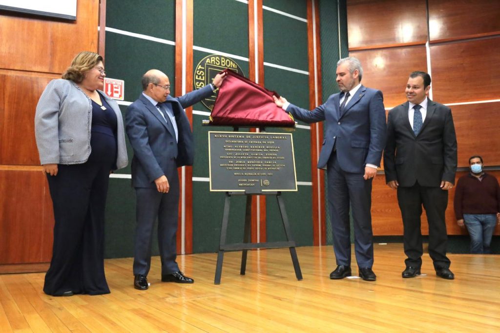 Durante el acto que se realizó en el Supremo Tribunal de Justicia del Estado, el mandatario recordó que por primera vez en casi 40 años “se pone en el centro de atención al trabajador, porque pasamos de una justicia que favorecía a los patrones, a una que protege los derechos humanos de las y los empleados”.