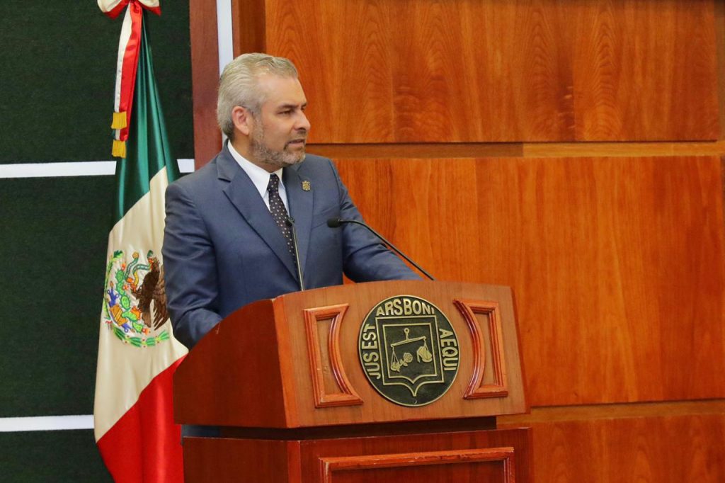 Morelia, Michoacán, 3 de octubre del 2022.- El gobernador Alfredo Ramírez Bedolla enfatizó que el nuevo sistema de justicia laboral, que a partir de hoy entra en vigor en Michoacán, resuelve una deuda histórica con las y los trabajadores, ya que brinda garantías en la defensa de sus derechos y seguridad jurídica.