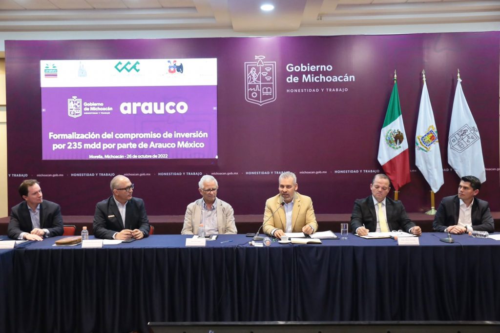 Refirió que con la instalación de la nueva planta de Arauco, no se consumirá madera en rollo para la elaboración de productos, sino que se utilizará el residuo natural de la corteza de los árboles y con ello garantizar la conservación de los bosques de la Región Oriente del estado y el hábitat de la Mariposa Monarca.