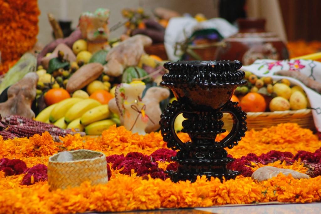 La Ofrenda se realizó conforme a la tradición de la comunidad de Santa Fe de la Laguna, pueblo fundado en el siglo XVI por Don Vasco de Quiroga, que contiene las formas y elementos de un Altar que se realiza en las casas en donde se espera de manera festiva-ceremonial a la persona fallecida en el año.