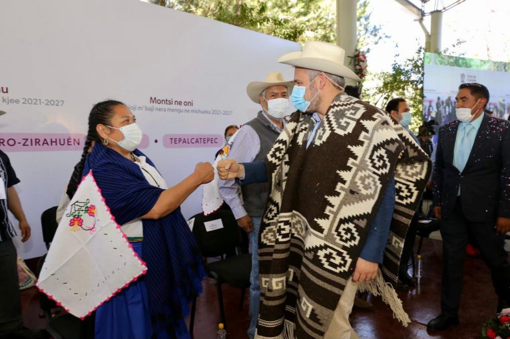 Cherán, Michoacán, 9 de noviembre del 2021.- Al convertirse en el primer gobernador que se le permite ingresar a Cherán, luego de diez años de restricciones a políticos y funcionarios públicos, Alfredo Ramírez Bedolla afirmó que su administración respaldará la libre determinación de las comunidades indígenas para la aplicación de presupuestos directos o participativos.