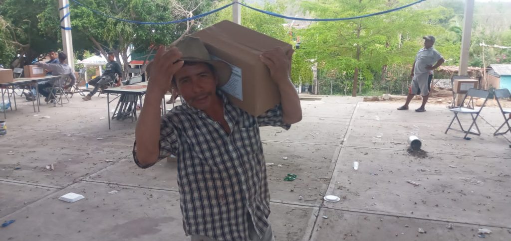 Aquila, Michoacán, 3 de julio de 2023.- El Gobierno de Michoacán, a través del Sistema DIF, que encabeza la presidenta honoraria del Patronato, Grisel Tello Pimentel, garantiza dotaciones de emergencia y desastre para los habitantes del municipio de Aquila, tras el paso del huracán Beatriz, informó el director general del organismo, Óscar Celis Silva.