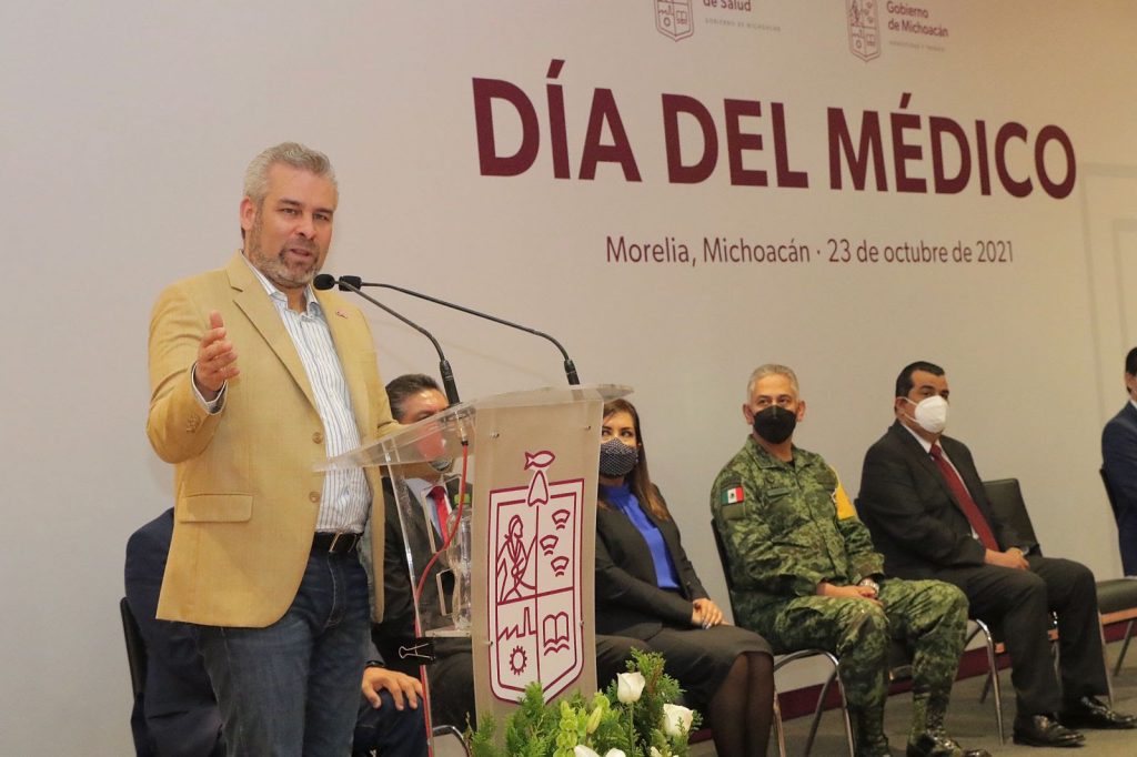 La pandemia por Covid-19, agregó, hizo reflexionar que la profesión representa un riesgo, ya que en Michoacán 8 mil médicos se contagiaron de coronavirus y 108 fallecieron a causa de esa enfermedad; sin embargo, reconoció la sensibilidad y humanismo que han demostrado los médicos.
