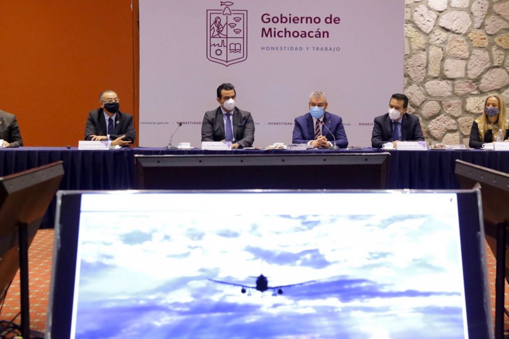 Morelia, Michoacán, 11 de noviembre del 2021.- En reunión de la Comisión Consultiva del Grupo Aeroportuario del Pacífico 2021, el gobernador Alfredo Ramírez Bedolla, aseguró que se reforzará la operatividad de los tres aeropuertos estatales: “Francisco, J. Múgica” de Morelia, “Ignacio López Rayón” de Uruapan y “Lázaro Cárdenas del Río” de Lázaro Cárdenas.
