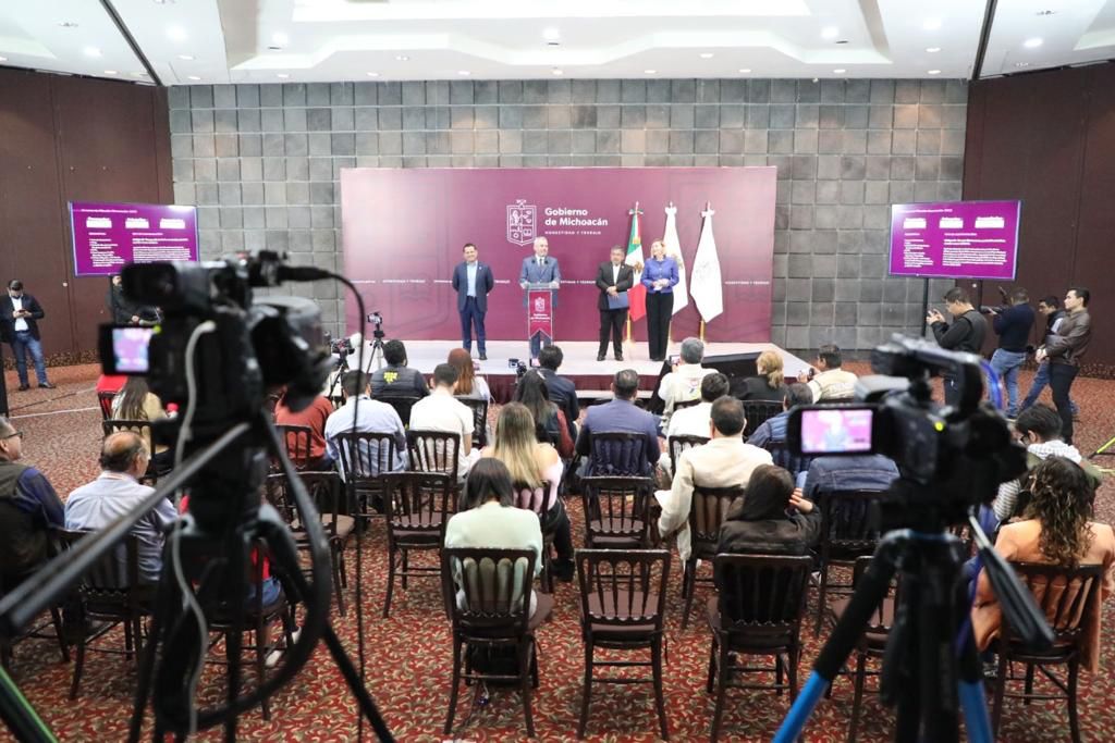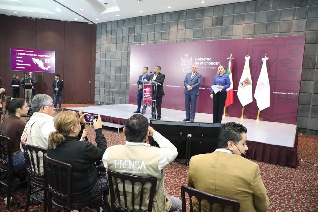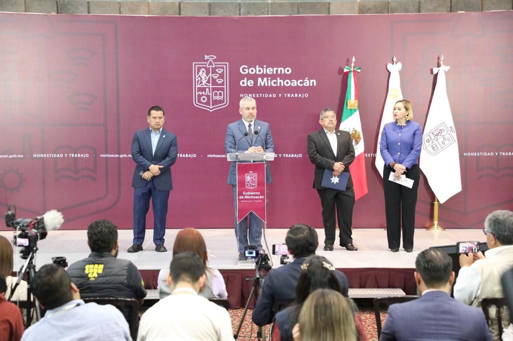 Morelia, Michoacán, 03 de octubre del 2022.- En rueda de prensa encabezada por el gobernador Alfredo Ramírez Bedolla, el titular de la Secretaría de Seguridad Pública (SSP), José Alfredo Ortega Reyes, destacó que la incidencia delictiva continúa a la baja, ya que en comparación con el año pasado, septiembre tuvo una reducción del 29 por ciento.
