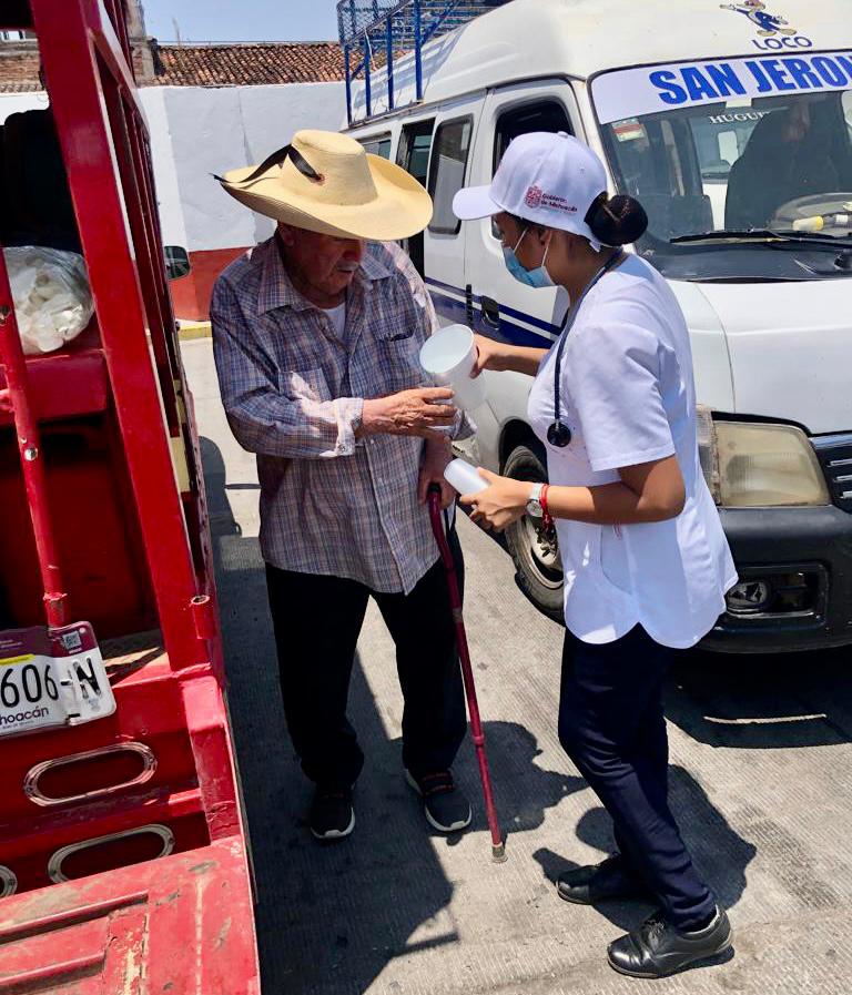 En Apatzingán, se recorren los lugares públicos y comunidades apartadas de municipios como Buenavista, Tepalcatepec, Múgica, La Huacana y Churumuco, donde también se distribuyen sobres de Vida Suero Oral y se capacita a la población sobre el consumo correcto para prevenir la deshidratación.