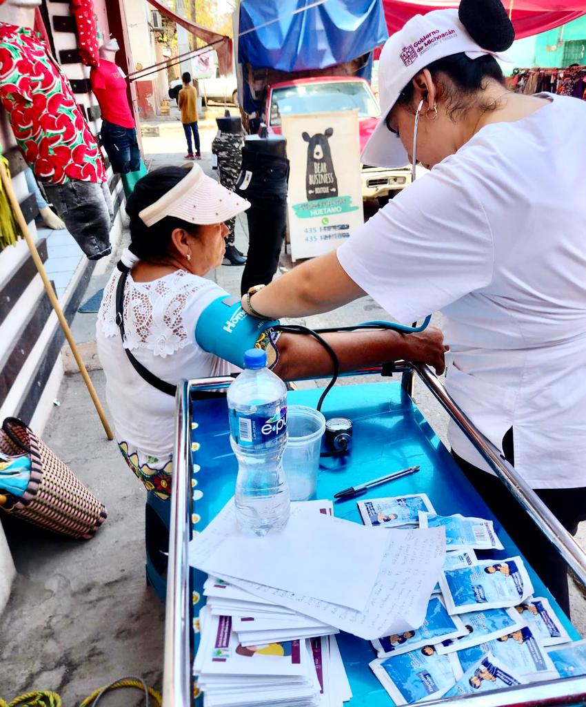 Personal médico y de enfermería del programa Salud en Tu Familia recorre mercados, plazas públicas, tianguis y centrales camioneras para llevar consultas médicas, análisis de laboratorio y medicinas, quienes también refuerzan acciones preventivas de deshidratación, insolación y golpe de calor.