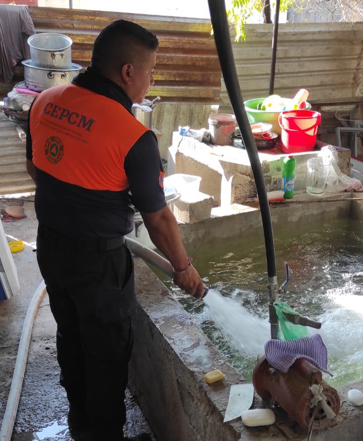 Con apoyo de personal de Protección Civil estatal se logró abastecer con agua potable a viviendas que carecen del suministro del líquido vital.