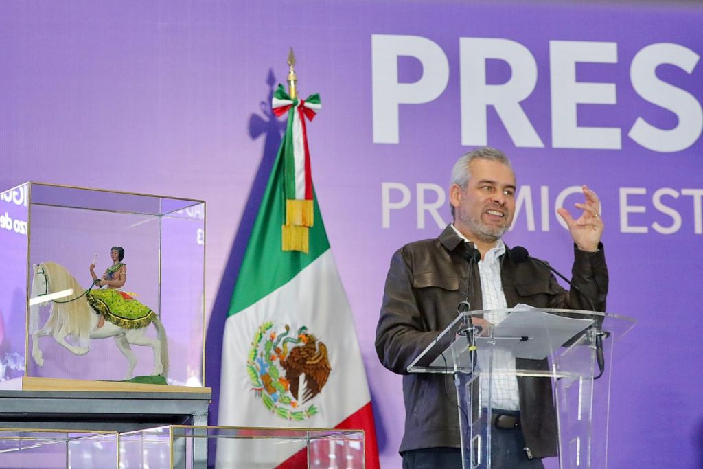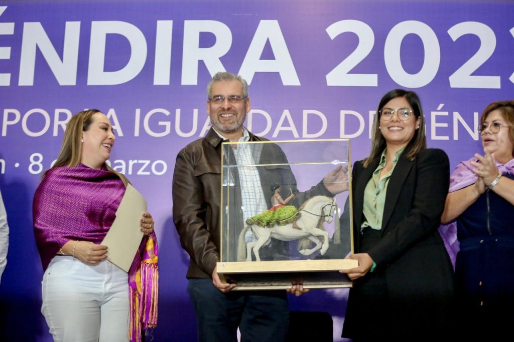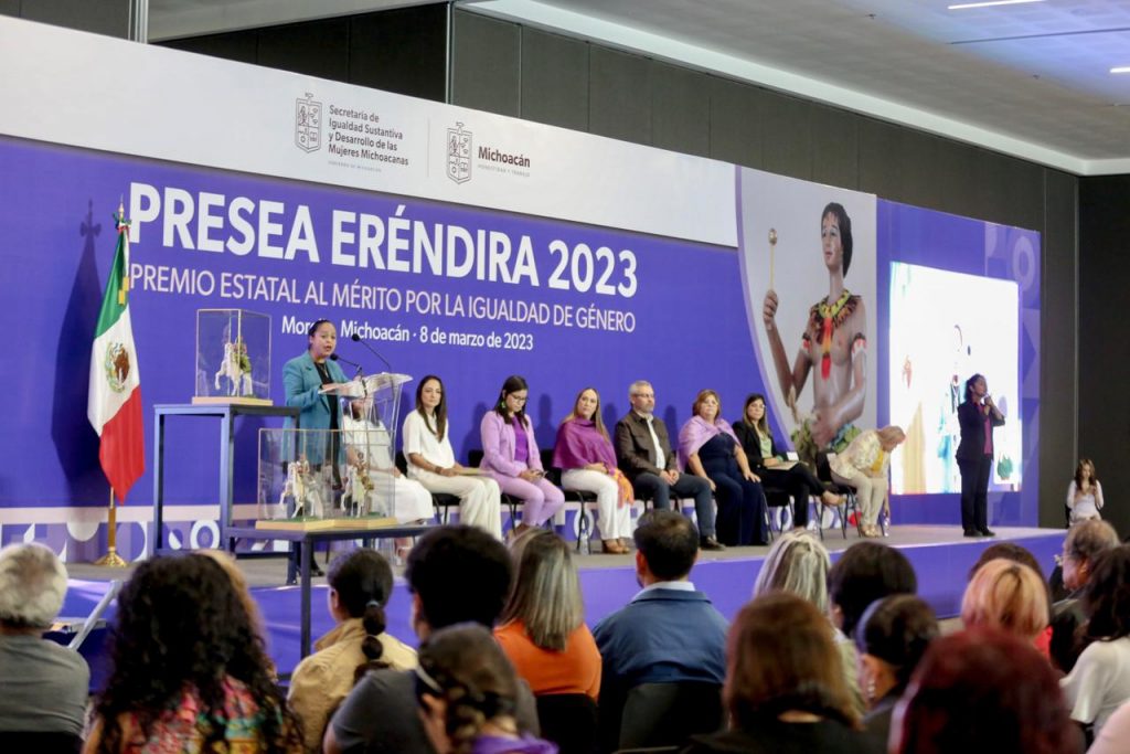 Acompañado por la secretaria de Igualdad Sustantiva y Desarrollo de las Mujeres Michoacanas (Seimujer), Carolina Rangel Gracida, el mandatario entregó la presea Eréndira a Maryflor Rojas González, por su labor a favor de los derechos reproductivos y sexuales; a Elizabeth Araceli Vega Mora, por la defensa de las personas con discapacidad auditiva y a Linda Elizabeth Tinajero Ponce, por su lucha contra la violencia vicaria.