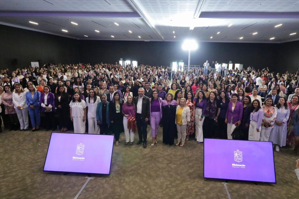 Estuvieron también la presidenta honoraria del Sistema DIF Michoacán, Grisel Tello Pimentel; la presidenta de la Mesa Directiva del Congreso del Estado, Julieta García Zepeda; funcionarias estatales y feministas locales.