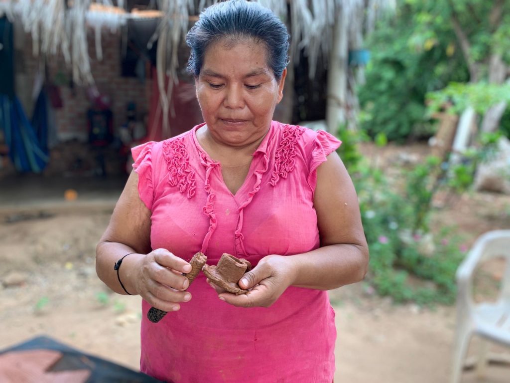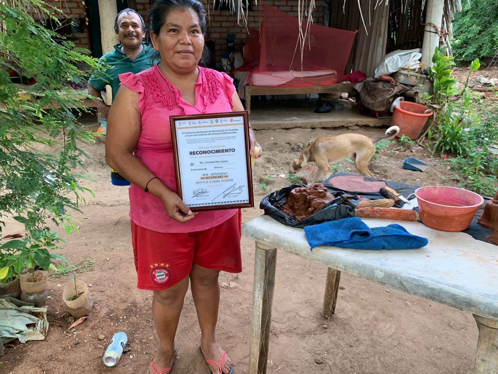 La artesana alfarera Patricia Juan Calvillo, de Cachán de Echeverría, expresó su alegría de recibir el apoyo para la reconstrucción de su horno, ya que mencionó que en su taller trabajan alrededor de 15 compañeras y compañeros que hacen piezas en alfarería y ahora estaban realizando la quema de sus piezas en un fogón.